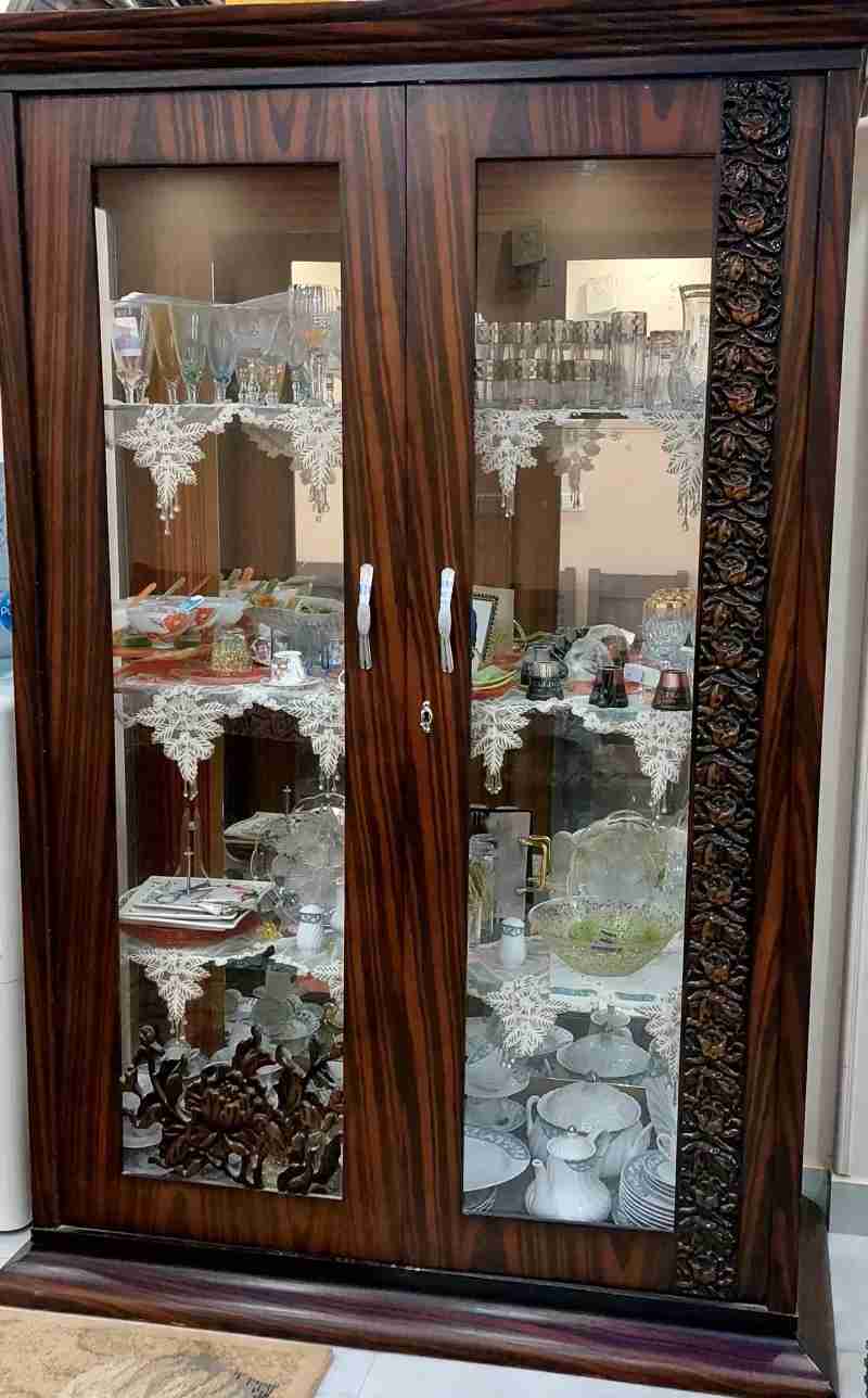 نيش شغل محترم، حالة ممتازة، زجاج سليم، واسع وشيك جدًا، مفيهوش أي كسور أو عيوب.