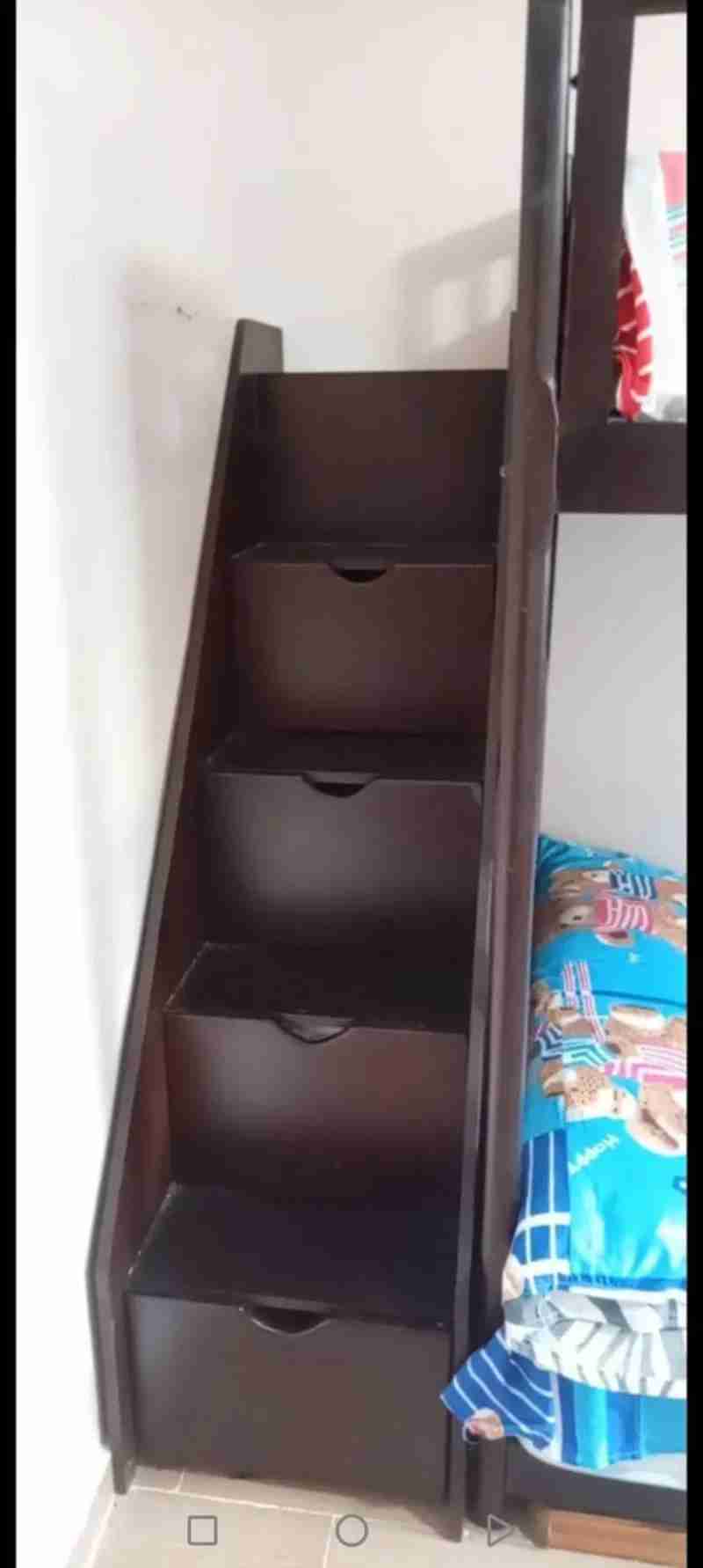 سرير بدورين خشب زان أحمر بحالة ممتازة – سلم بخمس أدراج من الخشب الزان الأحمر المتين، بحالة ممتازة شبه جديد، استعمال شهرين فقط