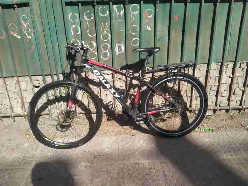 عجله ( GALAXY A5 ) عجله ماونتن فريم الومنيوم جشمه اماميه galaxy جشمه خلفيه shimano TZ 7تروس خلفيه /3 امامي مساعد لوك للفتح والغلق فرامل ديسك قويه طارات الومنيوم مقاس العجله (29) كماليات هديه مع العجله: حماله خلفيه قويه جدا وتستحمل+cup holder السعر : 6500 قابل للنقاش البسيط المكان مصر الجديده