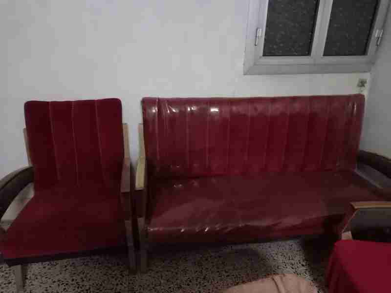 انتريه اميركان ودرن خشب زان سليم قماش قطيفة احمر يحتاج فقط للتنجيد