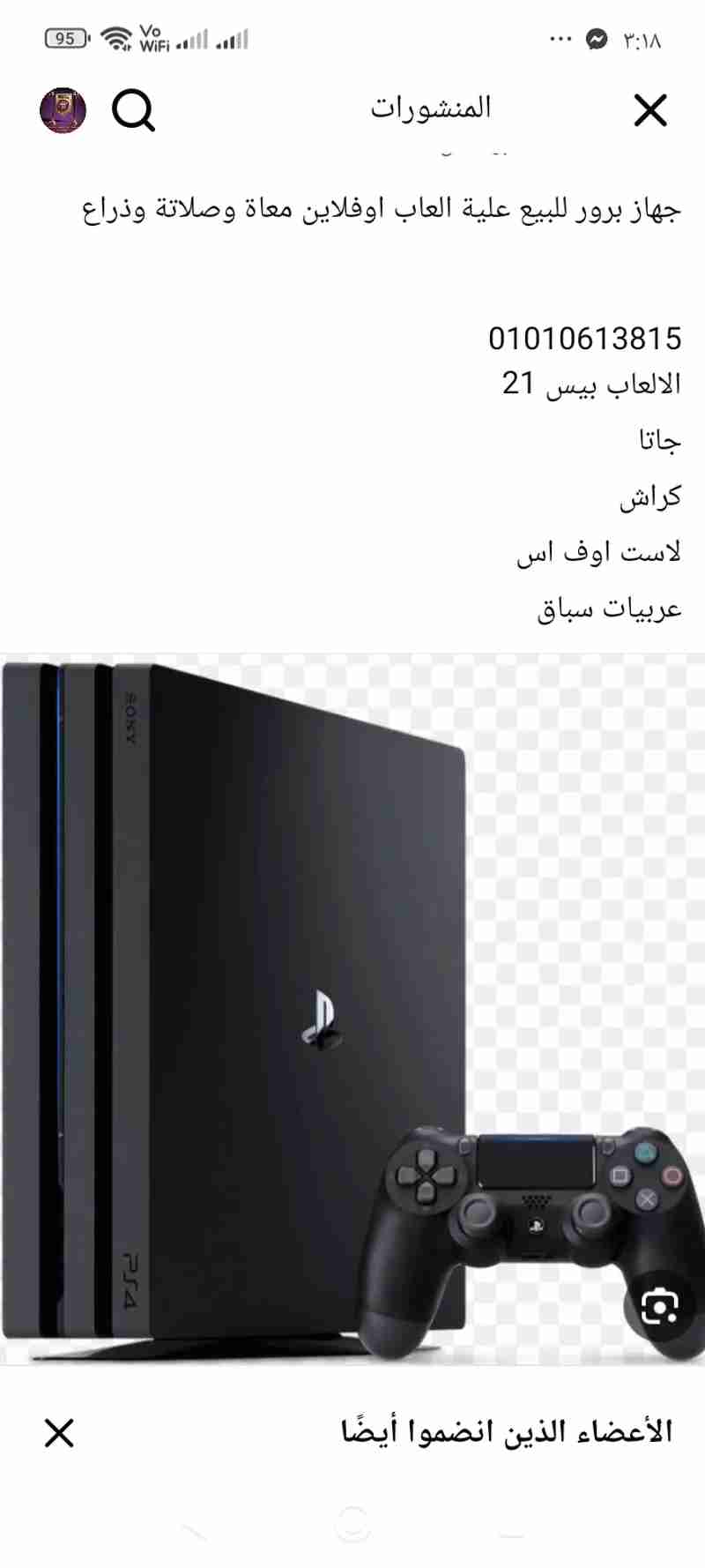 بيع جهاز بلايستيشن برو 4