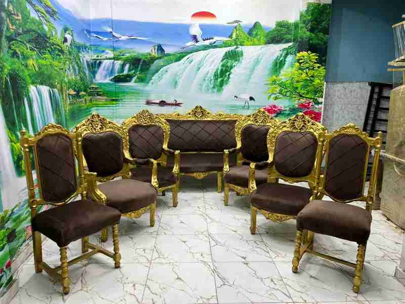*مستعمل مشدود حالة الزيرو* صالون ملوكي خشب زان قماش جديد كنبه و4 كراسي