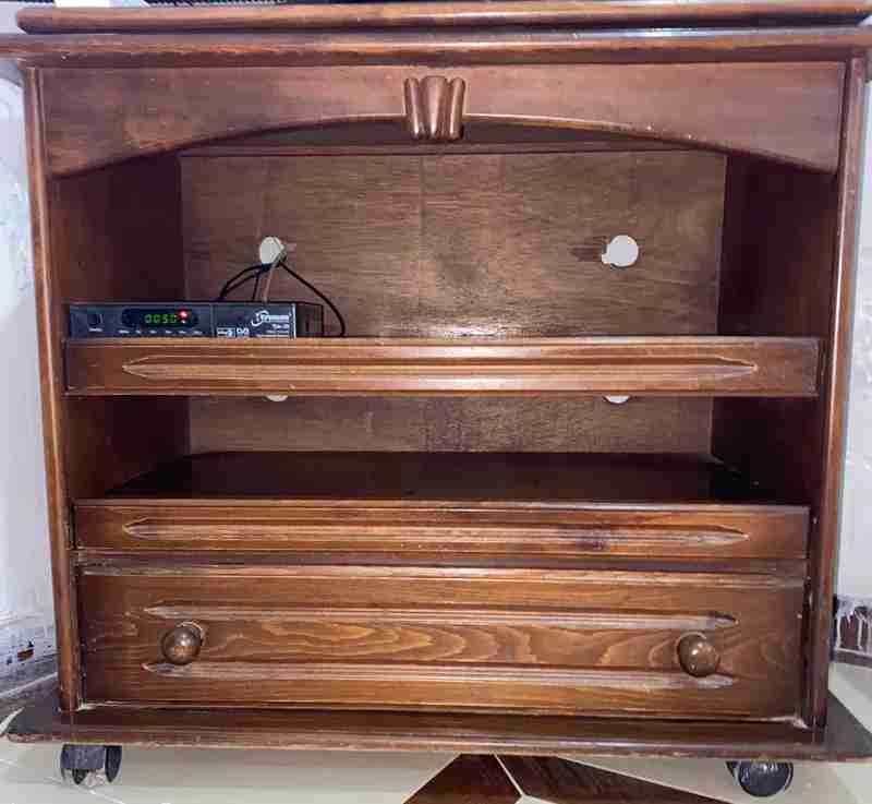 ترابيزة تليفزيون خشب زان اصلي بعجل مفيهاش عيوب