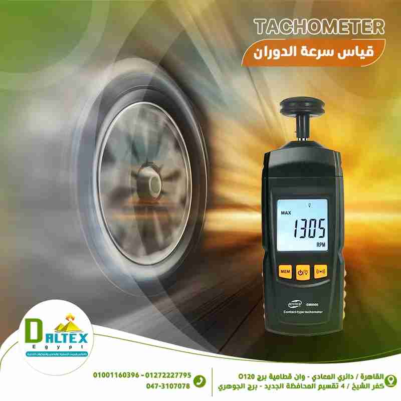 جهاز قياس سرعة الدوران والتردد من شركة دالتكس إيجيبت جهاز احترافي مزوّد بأحدث تقنيات المعالجات الدقيقة وتكنولوجيا الليزر، يمنحك أداءً عالي الدقة والموثوقية في جميع الاستخدامات الصناعية والفنية. مميزات الجهاز: نطاق واسع لقياس السرعة بدقة عالية. يعرض القيم التالية: أعلى قيمة / أقل قيمة / متوسط القراءة / آخر قراءة. شاشة LCD كبيرة مزوّدة بإضاءة خلفية لقراءة واضحة حتى في ظروف الإضاءة المنخفضة. تصميم متين مصنوع من بلاستيك ABS الخفيف والصلب، يوفّر راحة وسهولة في الاستخدام. خاصية الإغلاق التلقائي لتوفير الطاقة مع مؤشر انخفاض مستوى البطارية. يعمل ببطاريتين فقط من نوع AAA. المواصفات الفنية: نطاق القياس: من *** Website link removed *** حتى 19999 دورة في الدقيقة (RPM). الدقة: *** Website link removed *** (حتى *** Website link removed ***) و1 (من 1000 إلى 19999). معدل الخطأ: لا يتجاوز *** Website link removed ***%. زمن الاستجابة: *** Website link removed *** ثانية. - لاي استفسارات يمكنكم الاتصال بنا على: 002-*** Phone number removed ***6 002-*** Phone number removed ***4 002-047-3107078 او زيارة موقعنا : *** Website link removed *** أو زيارة صفحتنا علي الفيس بوك: *** Website link removed *** العنوان: جمهورية مصر العربية - القاهرة – دائرى المعادى وان قطامية برج 207 – الدور الاول شقة 105 - كفرالشيخ - تقسيم المحافظة الجديد ( خلف سيراميكا رويال ) برج الجوهري