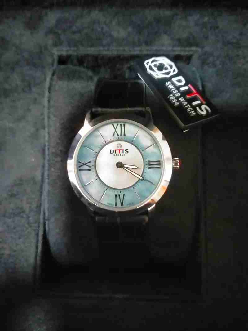 ساعة سويسري اوريچينال ماركة Ditis Geneve بمشتملاتها اصلية الساعة راقية جداا غطس تحت الماء حتي 5 متر مصنوعة من الكريستال والياقوت ضد الخدش والصدمات اتوماتيك جديدة وارد دبي من محلات محمد رسول خوري الغنية عن التعريف جديدة تم الفتح للتصوير فقط.. الساعة ثمنها 4000 درهم إماراتي للبيع لأعلي سعر
