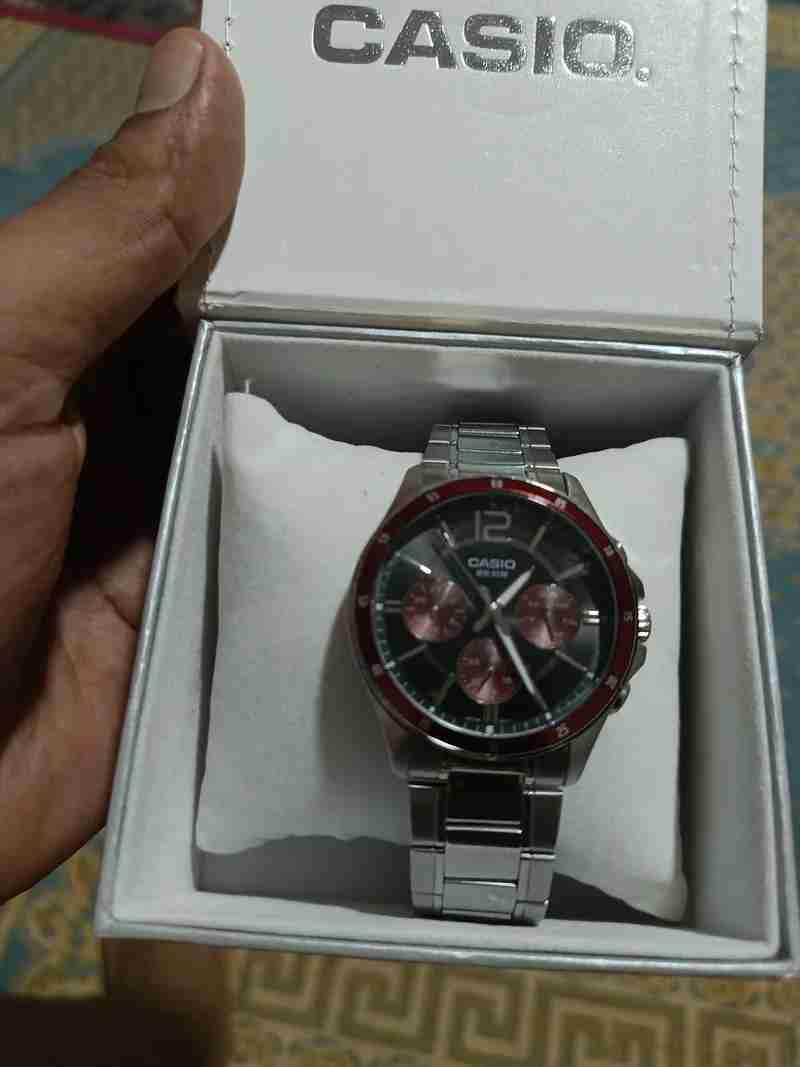 ساعة بسوار ستانلس ستيل ومينا للرجال من كاسيو، موديل MTP-1374D-5A, فضي، انالوج بعقارب