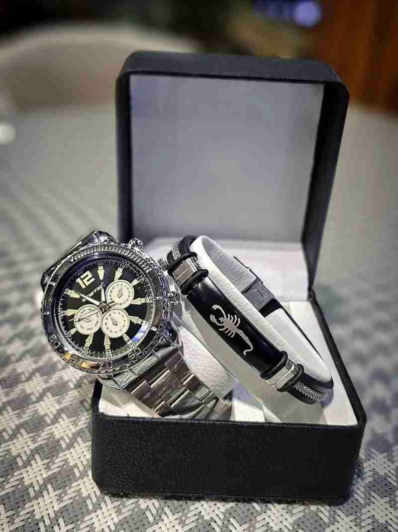 ساعة تجمع بين الفخامة والدقة لتكون رفيقك المثالي في كل مناسبة. تصميم أنيق يعكس ذوقك الراقي ويمنحك حضورًا استثنائيًا.