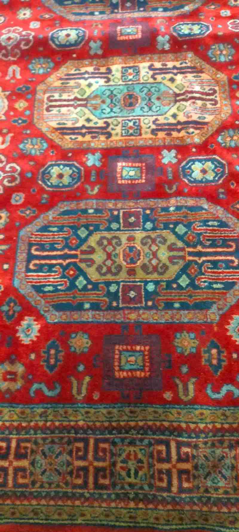 قطعه نادره تراثيه مقاس ٢*٢٨٠ صوف يدوى طراز اذربيجانى عمرها اكتر من ٧٠ عام الوان نباتيه بحاله جيده جدا عقد كثيفه