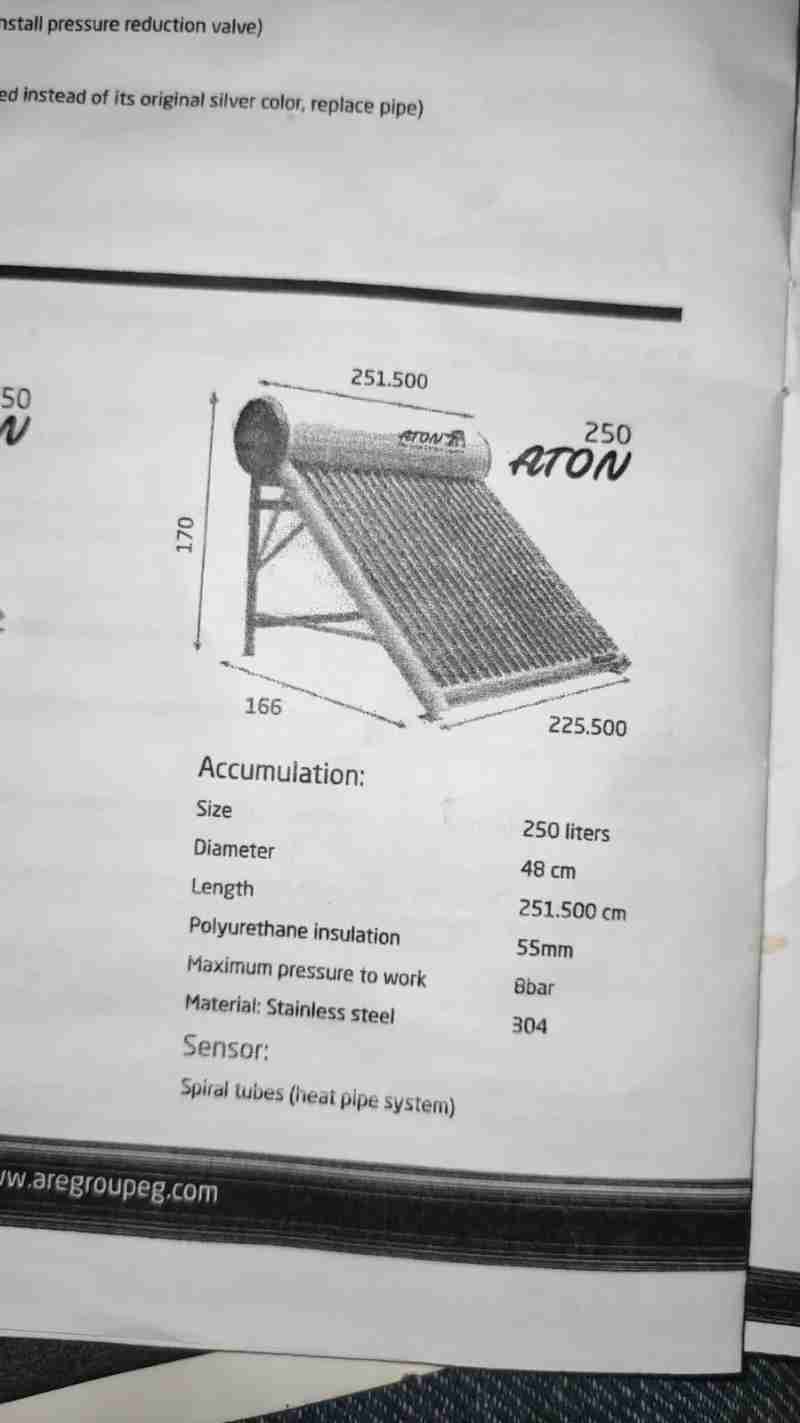 سخان مياه يعمل بالطاقه الشمسيه والكهرباء 250لتر جديد بكل مشتملاته