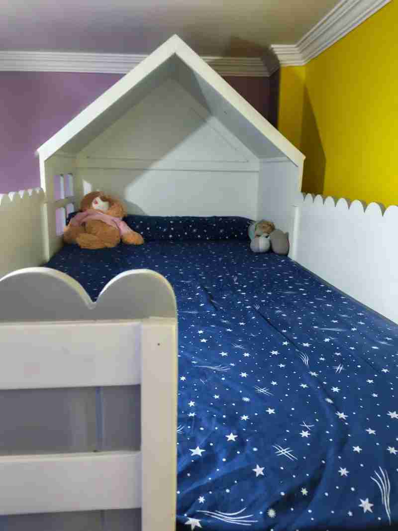 سرير دورين خشب زان موفر للمساحة + ٢ درج كبير اسفل السرير وجزء سحارة للتخزين + وحدة سلم بها ٤ أدراج + الملل الخاصة بالسرير + ٢ مرتبة forbed منهم واحدة soft