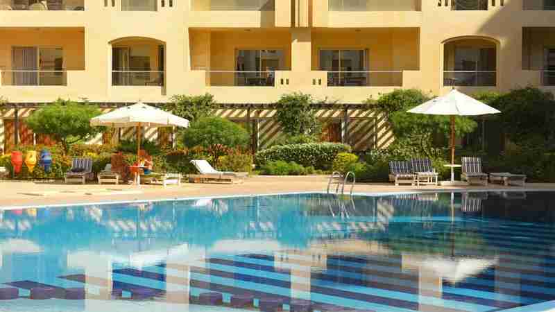حمام سباحة واسع ومساحات خضراء للاسترخاء