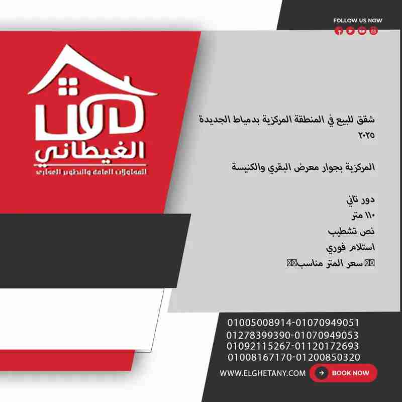 شقق للبيع في المنطقة المركزية بدمياط الجديدة 2025