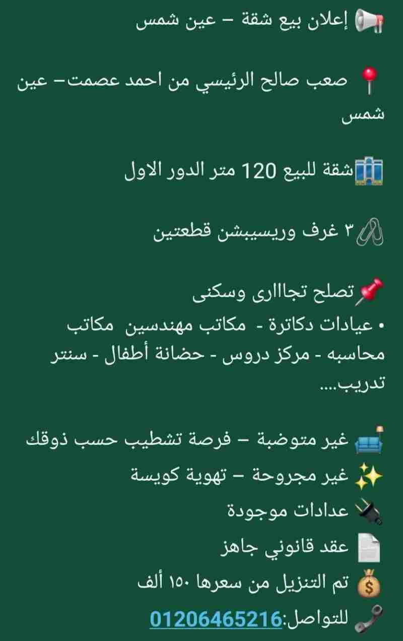 Apartment for sale in Ain Shams