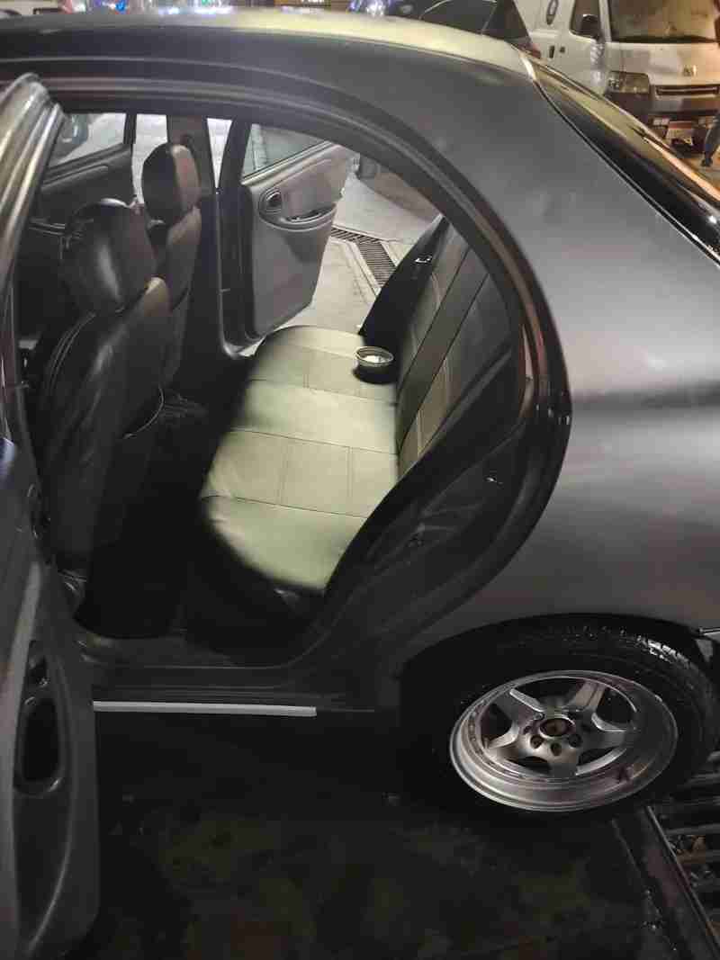 لانوس 2015 اتوماتيك لون فضي عداد 97الف راشه جانبين فقط السقف والكبوت والشنطة فابريكة بالكامل