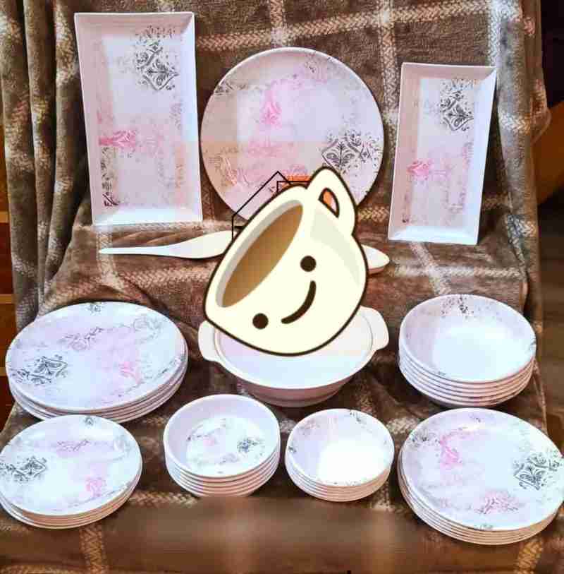 طقم ميلامين تحفه بجد 42قطعه بسعر حرق جديد بالكرتونه حراري بيدخل غساله اطباق وميكروويف ضد للكسر