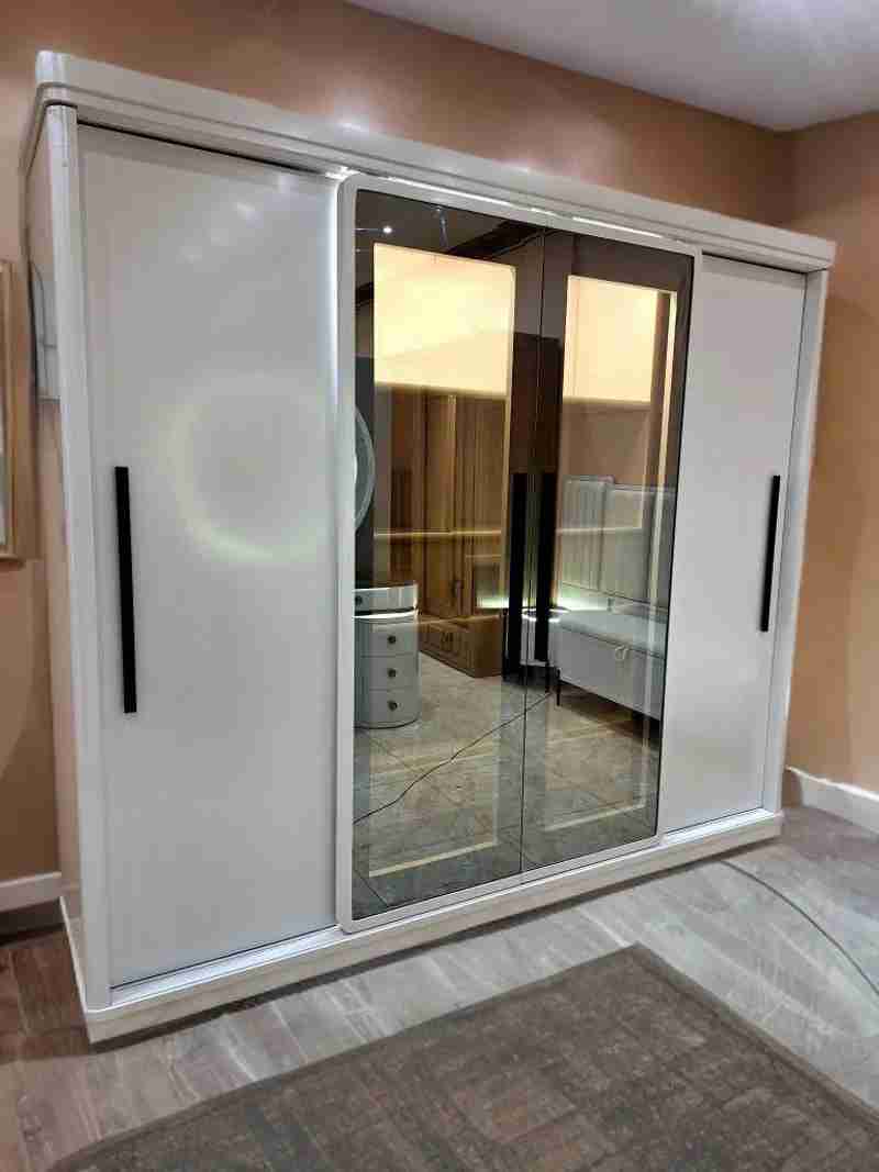 غرفة نوم حديثة خشب كونتر وزان كاملة بالمرايا سرير160 دولاب260