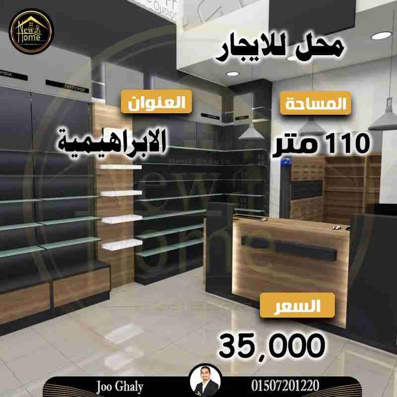 محل للايجار 110 م فى موقع متميز فى الابراهيمية