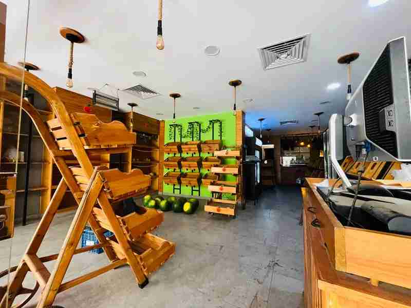 ساوند سيستم/ ديكورات خشبية راقية جداً/ اضاءه /٢ باب سيكوريت بكامل واجهة المحل/ واجهة عريضة ٦ متر تقريباً/ حمام / مطبخ يصلح لجميع الاغراض/ مخزن منفصل داخلى و يصلح لادارة المكان/