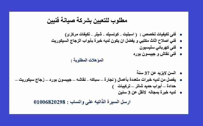 ارسل السيرة الذاتيه على واتساب : 01006820298