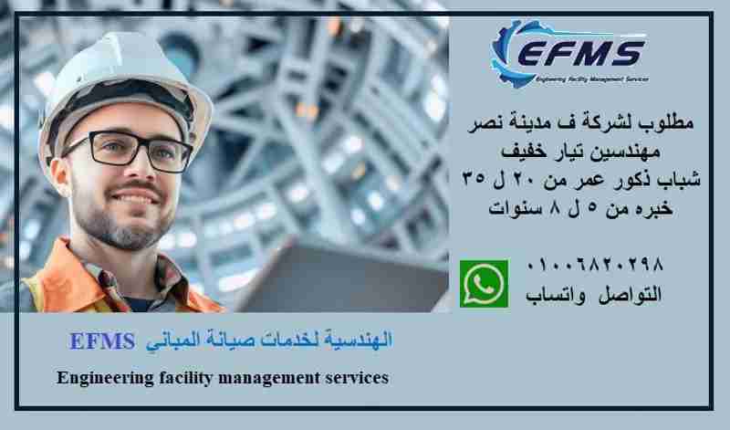 مطلوب لشركة ف مدينة نصر مهندسين تيار خفيف شباب ذكور عمر من 20 ل 35 خبره من 5 ل 8 سنوات التواصل واتساب***8