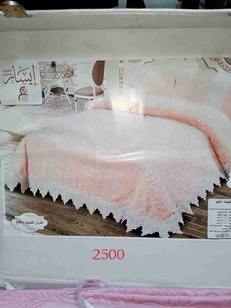 مفرش سرير قطيفه لون كشمير متطعم بالجوبير 4 قطع