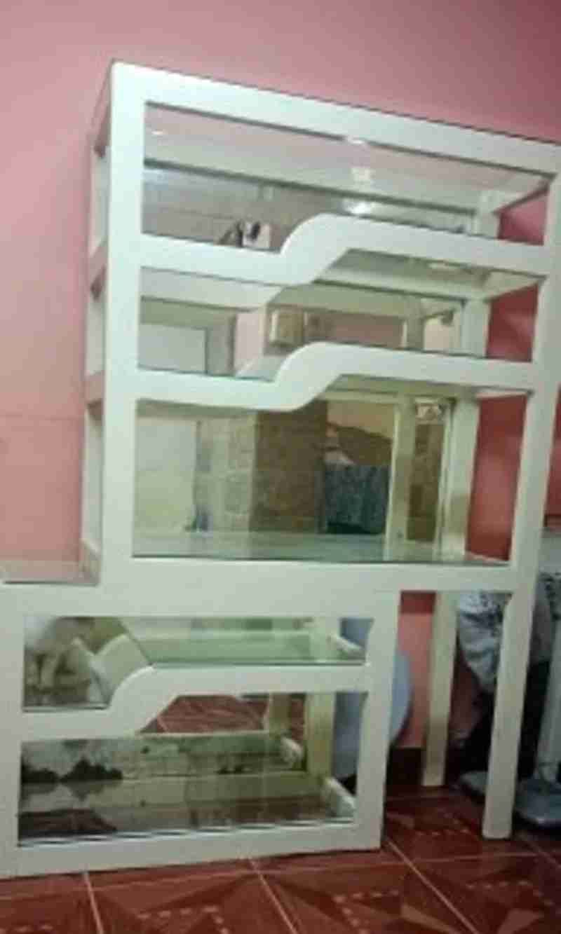 مكتبة مودرن مصنوعة من خشب الزان المتين والعالي الجودة تتميز باللون الأبيض الأنيق الطول ١٨٠سم والعرض ١٤٠سم الارفف زجاج محمل تنفع لمحامي أو دكتور مهندس او لغرفة المعيشة