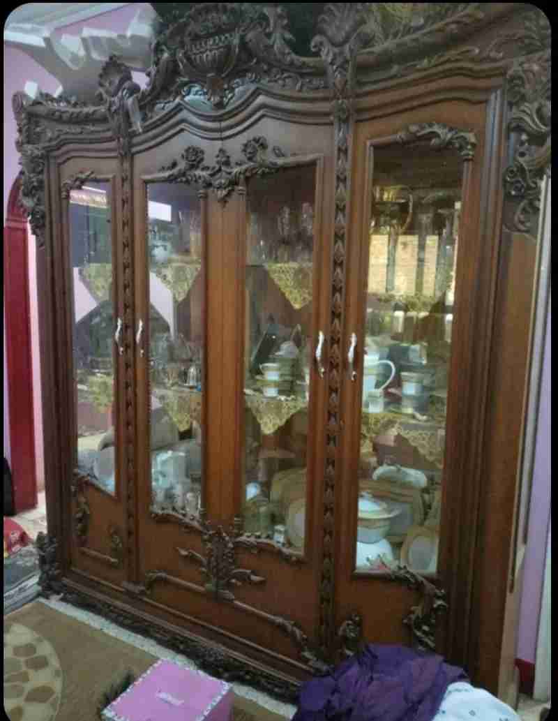 نيش 4 درفة عسلى استعمال خفيف جدا بتاع عروسة بالزجاج بتاعه كامل ينفع يتحط فى مكتب شكله شيك جدا وشغله عالى