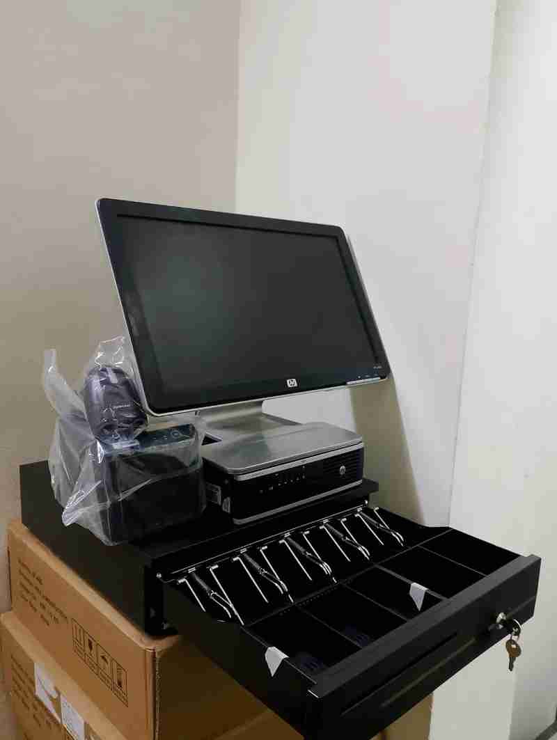 كمبيوتر + درج نقديه+ طابعه فواتير + سكانر قارئ الباركود