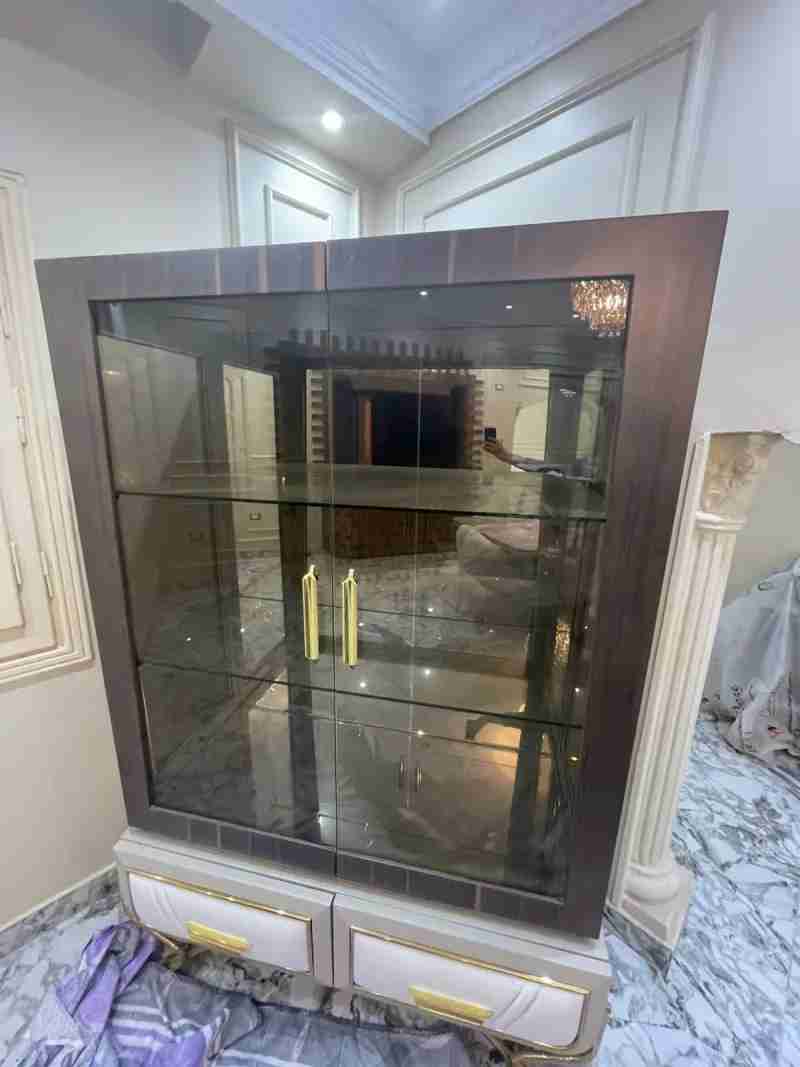 تتكون من ٦ كراسي وطاولة رخام ونيش وبوفيه ومرايه