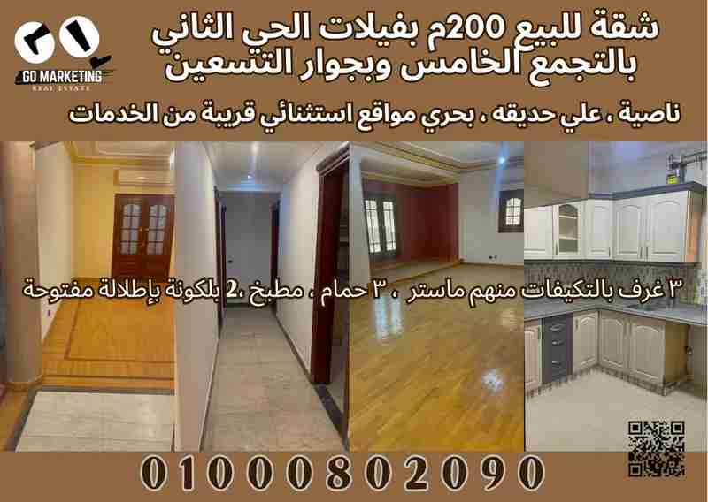 شقة للبيع 200م بفيلات الحي الثاني بالتجمع الخامس